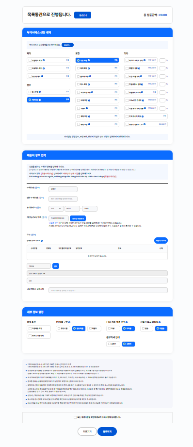 ✅ 부가서비스 신청내역 / 배송지 정보 입력 / 세부 정보 설정 입력은 구매대행과 동일하게 하시면 됩니다.