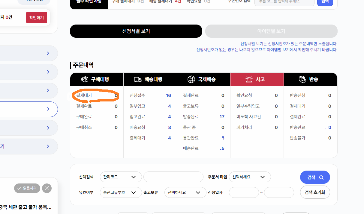 ✅ 신청이 완료되면 결제대기에 주문서가 올라가며 결제를 해 주시면 결제완료로 넘어갑니다.