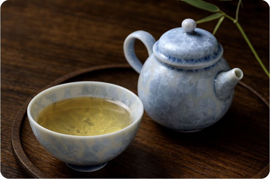 - 시원한 아름다움 : 얼음 결정이 퍼진 듯한 투명한 질감 덕분에 차를 따랐을 때 더욱 맑고 고운 분위기를 줍니다.