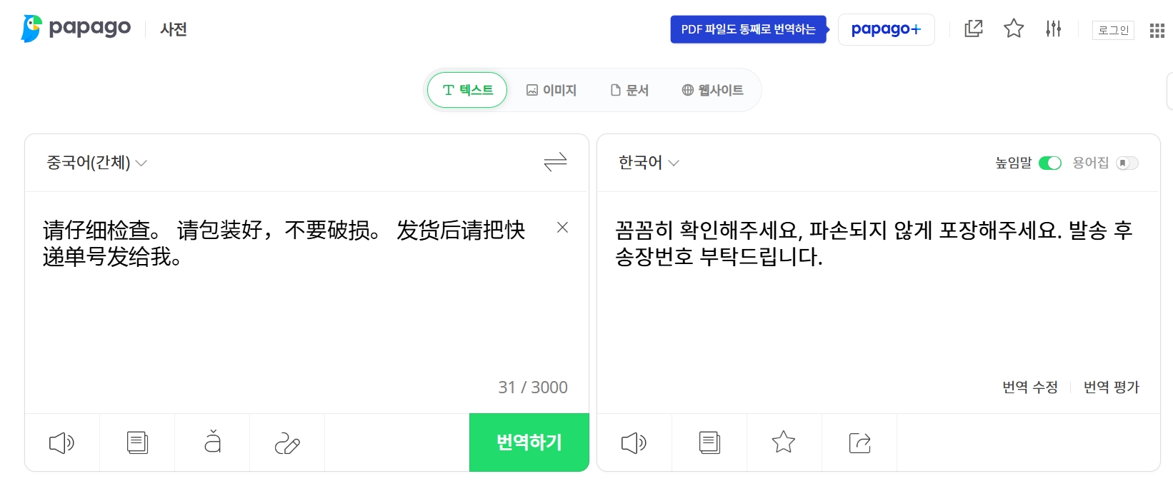 파파고 : 유리가 깨졌어요. 다시 보내주세요. > 玻璃碎了。 请再发一次